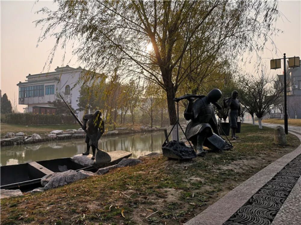 这是在浙江湖州织里镇义皋村拍摄的古人清淤雕像(12月11日摄)。新华社记者 魏一骏 摄