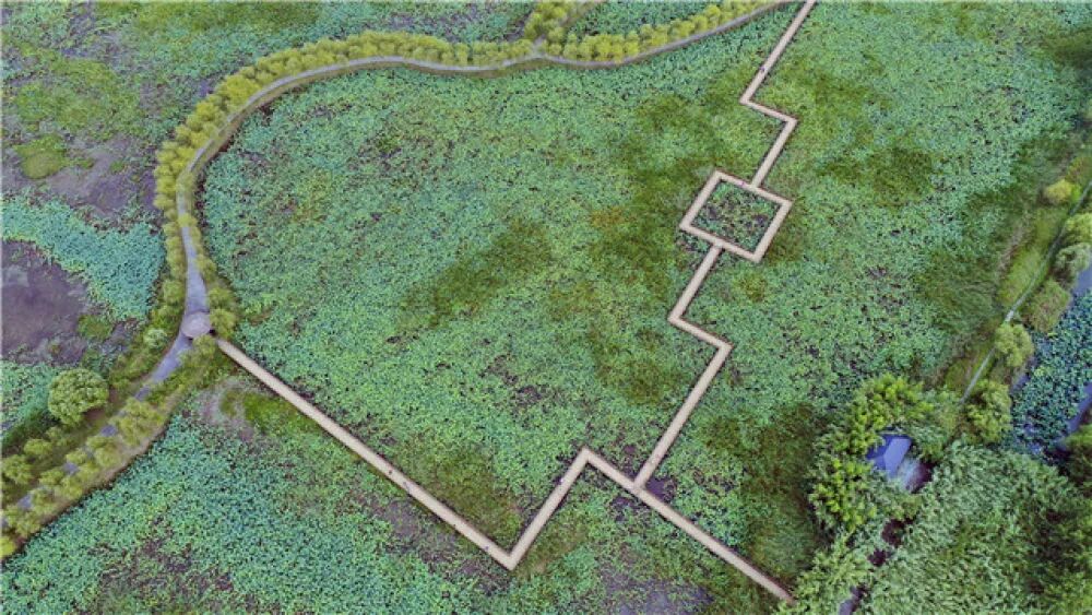 “锦堤蝶醉”“芦花飞絮”“烟云梦泽”“蔚林荷语”……一块块依不同时节而定名的景观,让属于南太湖水系的湖州长田漾湿地公园充满诗情画意。