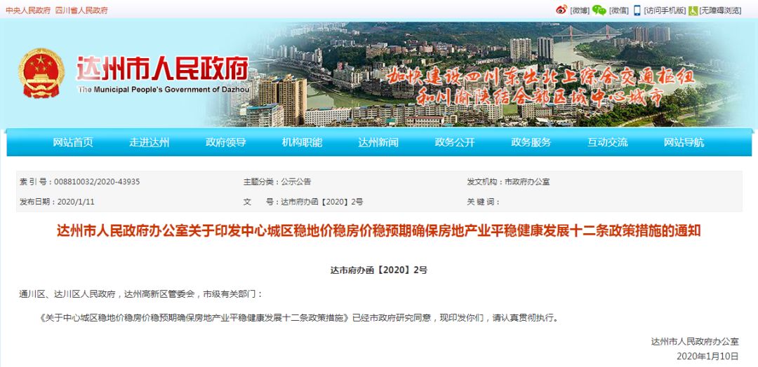 而本次达州出台《达州市人民政府办公室关于印发中心城区稳地价稳房价稳预期确保房地产业平稳健康发展十二条政策措施的通知》(以下简称“十二条”),主要是针对当地房地产面临的新形势,作出的必要调整。