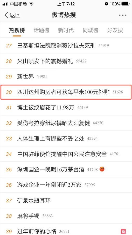 “四川达州购房者可获每平米100元补贴”热搜了!