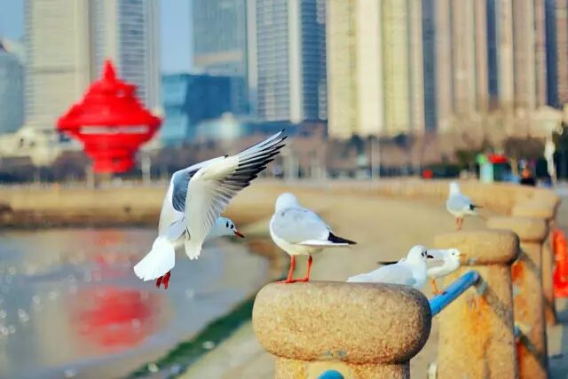 栈桥、八大关、五四广场、奥帆中心红嘴鸥的身影