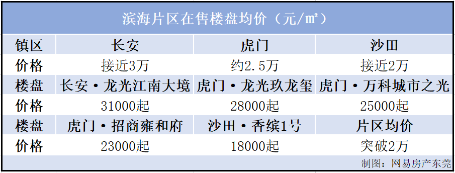 综合过去一年的楼市数据,自大湾区规划纲要颁布以来,滨海湾新区楼市价格涨势,遥遥领先东莞区域房价涨幅。 据东莞市统计调查信息网发布的数据,今年11月东莞一手住宅均价20812元/㎡,环比去年(2018年11月新房房价18964元/㎡)上涨9.7%。而涨幅最高的区域是滨海片区,均价24478元/㎡;东部产业园片区最低,均价16095元/㎡。此外,过去一年内,滨海片区新房价格涨幅最高,环比上涨17.1%。 01 政策与区位双驱动,在售楼新盘均价破2万,近“深”者贵 近日,《东莞市滨海湾新区城市总体规划(2018-2035年)》出台,本次规划范围包括交椅湾、沙角半岛和威远岛三大板块,规划总面积为84.1平方公里。明确定义滨海湾新区是粤港澳大湾区协同发展先导区、广深科技创新走廊核心平台。此外,东莞计划在滨海湾新区规划建设约1500亩的滨海湾粤港澳青年创业城,预计到2025年,该片区人口规模超200万人。 滨海湾新区地处粤港澳大湾区几何中心,毗邻广州、深圳两大经济强市,邻近香港、澳门两大特别行政区。得天独厚的区位优势,加上政策红利,人口流入,业界预估,2020年,随着规划建设的逐渐落地,滨海湾片区楼市将迎来持续升温。 图片来源:东莞滨海湾新区、东莞港官网 2019年合富研究院(东莞)的数据曾显示,当年前三季度,沙田、虎门与长安的一手房网签均价分别为1.9万/平、2万/平以及2.9万/平。于是业界预估,该片区之中,越靠近深圳的区域,楼市越是吃香。 2020年1月数据显示,目前滨海湾片区在售楼盘中,长安均价最高,接近3万;虎门次之,均价约2.5万;沙田略低,接近两万边缘。长安在售新盘的龙光江南大境(商住),均价最低31000元/㎡起;虎门的龙光玖龙玺(商住),均价28000元/㎡ ;虎门的万科城市之光(商住),均价25000元/㎡起;虎门的招商雍和府(商住),均价23000元/㎡起;沙田的香缤1号(商住)均价最低,18000元/㎡起。整体而言,片区均价突破两万大关。 综合长安、虎门、沙田三镇街当前在售新盘的价格横向对比,滨海湾新区整体楼市价格趋势符合业界预估:近“深”者贵。 02 二手房市场反应“慢半拍”,今年二手房价或将水涨船高 2019年,在一手房市场,东莞城区、滨海片区是成交主力。而在二手房市场,东南临深片区则是市场成交主角,其次为城区片区。从安居客发布的数据看,2019年滨海湾区二手房价格变化较为平缓。其中,长安、沙田二手房价格与2018年同期相比略有下滑,虎门二手房价格则较为坚挺,稳中有涨。整体而言,滨海湾片区二手房均价约1.5万。相对一手市场而言,滨海湾片区二手房市场对政策的反应较为平稳,有点“慢半拍”。 安居客数据显示,长安2019年1月二手房均价 12017 元/m²,12月二手房均价 11879 元/m²,整体同比去年同期下跌 4.12% 。 以下为2019年2月—2020年1月,长安新区二手房价格走势图。来源:安居客。 而虎门的二手房市场则略有不同。虎门2019年1月二手房均价 14821 元/m²,12月二手房均价 14681 元/m²,整体而言,同比去年同期上涨 9.57% 。 以下为2019年2月—2020年1月,虎门二手房价格走势图。来源:安居客。 沙田2019年1月二手房均价 16204 元/m²,12月二手房均价 16170 元/m²,同比去年同期下跌 0.74% 。 以下为2019年2月—2020年1月,沙田二手房价格走势图。来源:安居客。 即便如此,随着滨海湾最新规划出台,大湾区大学进入筹备阶段,虎门沙角半岛板块,TOD、智慧城市进一步推进,以及交椅湾板块已经实打实地引入了中国排名第一的网络产品与服务领军企业紫光集团、中国战略性新兴产业领军企业100强榜单中的欧菲光集团,以及正中集团、OPPO以及VIVO等多家科创型巨头企业。业界预估,滨海湾片区2020二手房价受众多利好因素影响或迎来上涨。 2020年第二周数据显示,滨海湾片区二手房成交均价16649元/㎡,环比上升6.6%,成交套数37套,环比下降9.8%。在滨海湾最新规划出台之后,滨海湾片区业主出现惜售心态,导致二手房成交量下降,价格上涨,这是二手房市场涨价的普遍表现。 图片来源:东莞中原战略研究中心 综上所述,在滨海湾最新规划出台之后滨海湾片区二手房市场的反应符合业界预估,滨海湾片区二手房价格2020年或将水涨船高。 附上:2019年2月和2020年1月二手房价格对比涨幅