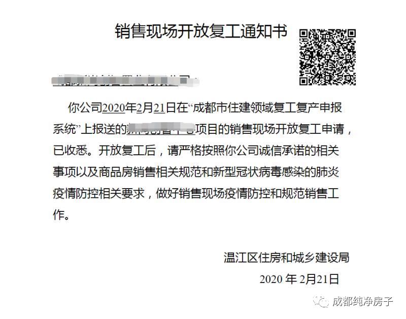 从成都市住建局获悉,截至2月24日,全市在售商品房销售现场,开放率接近90%。为了推进全市商品房销售现场在做好疫情防控的前提下尽快开放,成都市住建局为企业“定制”复工审批“云办理”平台,将原来需要几天时间、跑多个部门才能拿到的“复工PASS”,简化为一键即办;同时为帮助企业尽快复工,该局还主动作为,向企业提供内容丰富实用的“复工服务包”。“企业复工的积极性很高,假如按照前期方式进行复工申报的话,时间会比较久。我们必须急企业所急,打造出一个完善、快捷的网络申报平台!”成都市住建局相关负责人告诉笔者。