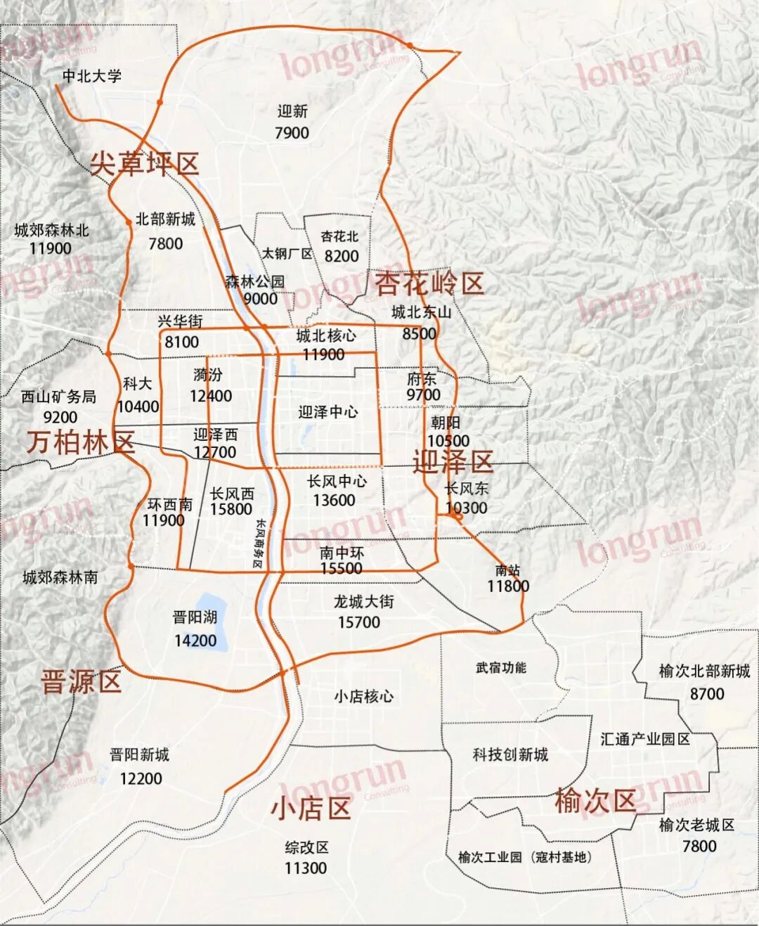 府东板块:中铁诺德城、保利·金地迎泽上品等项目距离城市中心较近,可享受基础配套。