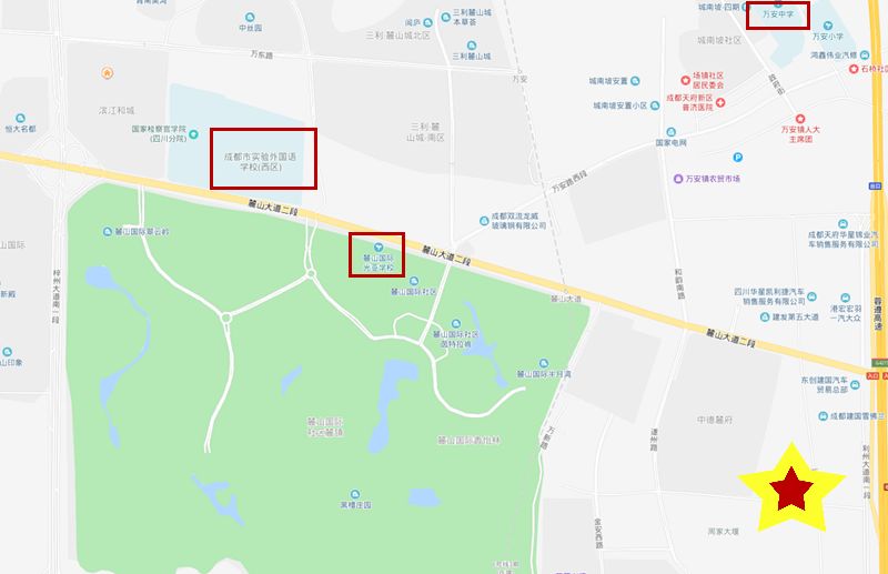 在宗地2公里范围内,分布有成都市实验外国语学校,万安中学、万安小学、麓山国际光亚等学校,均已建成开学。